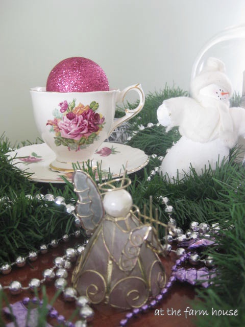 I like the way you combined your teacups and ornaments with the color pink uniting them throughout to make a lovely Christmas tea=scape!
