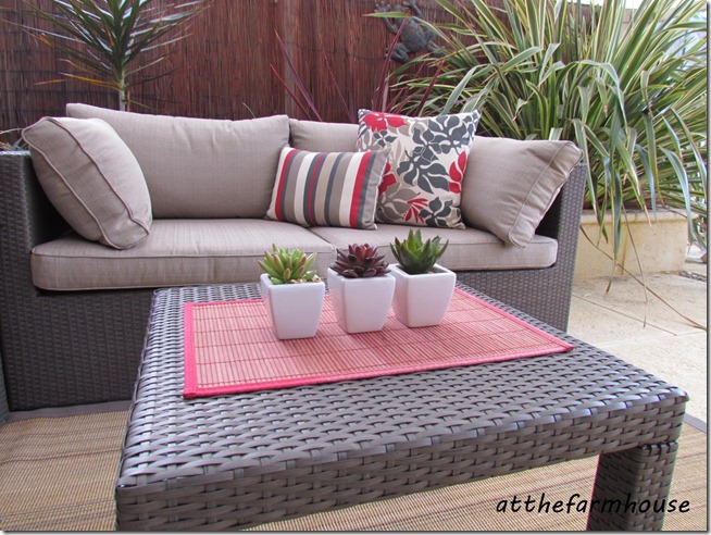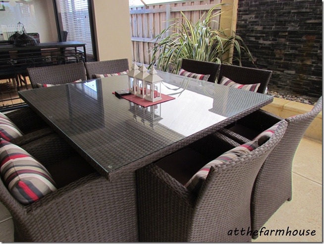 I have some photos of our new outdoor furniture (at the beachhouse) to share with you…I have had the table since we bought the house two years ago but have been waiting to purchase some chairs to match to finish off the area. Finally I have found what I wanted – I had lots of problems finding the same colour match but I’m really pleased how they have all come together.