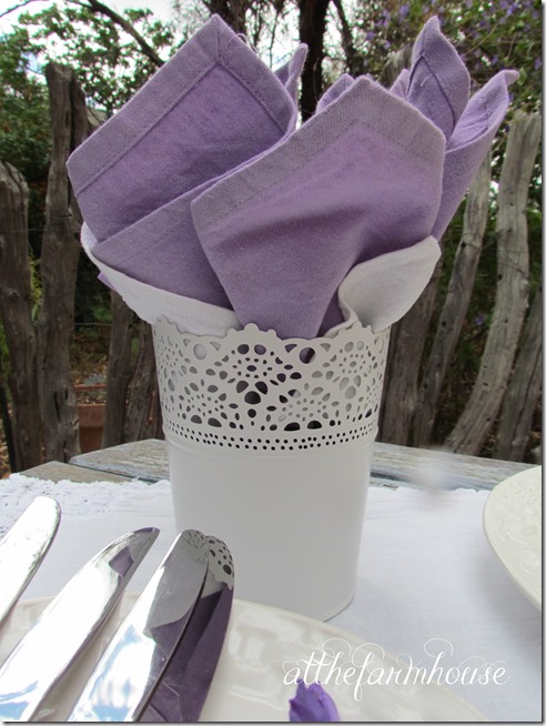 Oh now that is a totally gorgeous outdoor tea table! I love the violet and white. Perfect for spring and Easter!