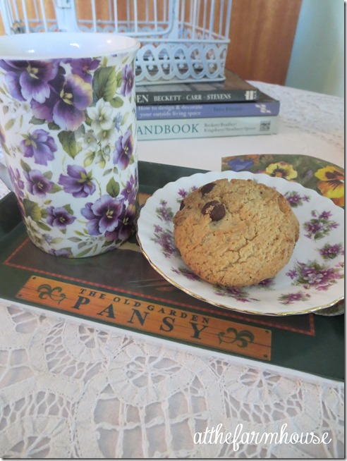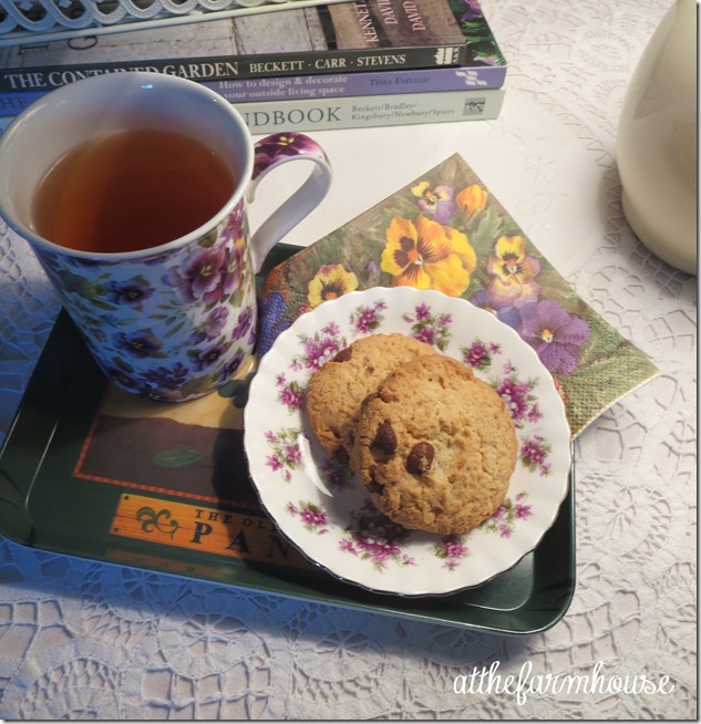 Your tea cup and tea pot are beautiful and I am sure that felt good after doing all that work. Yum yum cookies.